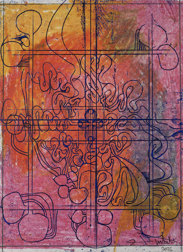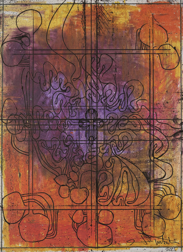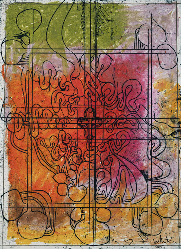 Kurt Zein had contact with the Viennese Actionists as early as the 1960s. For the first collaboration with the Druckwerkstatt für handgedruckte Original Grafik, Hermann Nitsch created a line etching and poured pig’s blood on mould paper. Over the years, the artist, together with Kurt Zein, expanded his technical vocabulary, including the techniques of vernis mou, alugraphy and aquatint.
