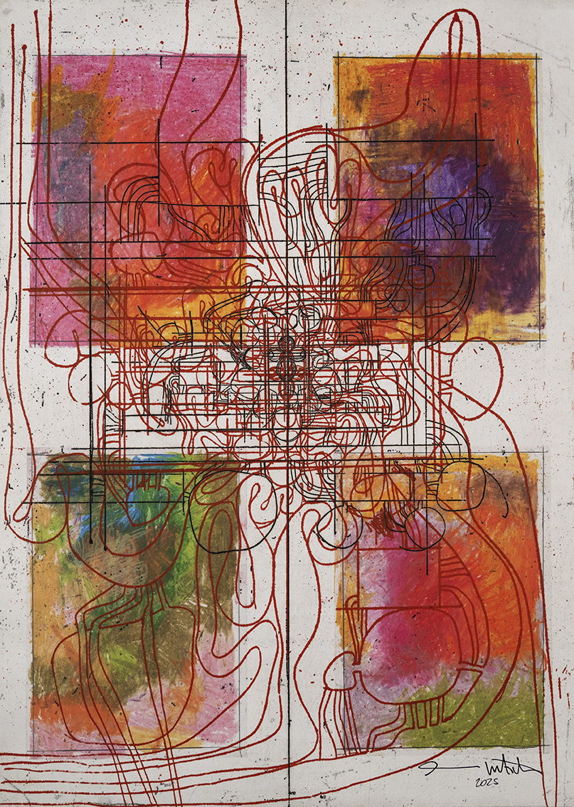 Kurt Zein had contact with the Viennese Actionists as early as the 1960s. For the first collaboration with the Druckwerkstatt für handgedruckte Original Grafik, Hermann Nitsch created a line etching and poured pig’s blood on mould paper. Over the years, the artist, together with Kurt Zein, expanded his technical vocabulary, including the techniques of vernis mou, alugraphy and aquatint.